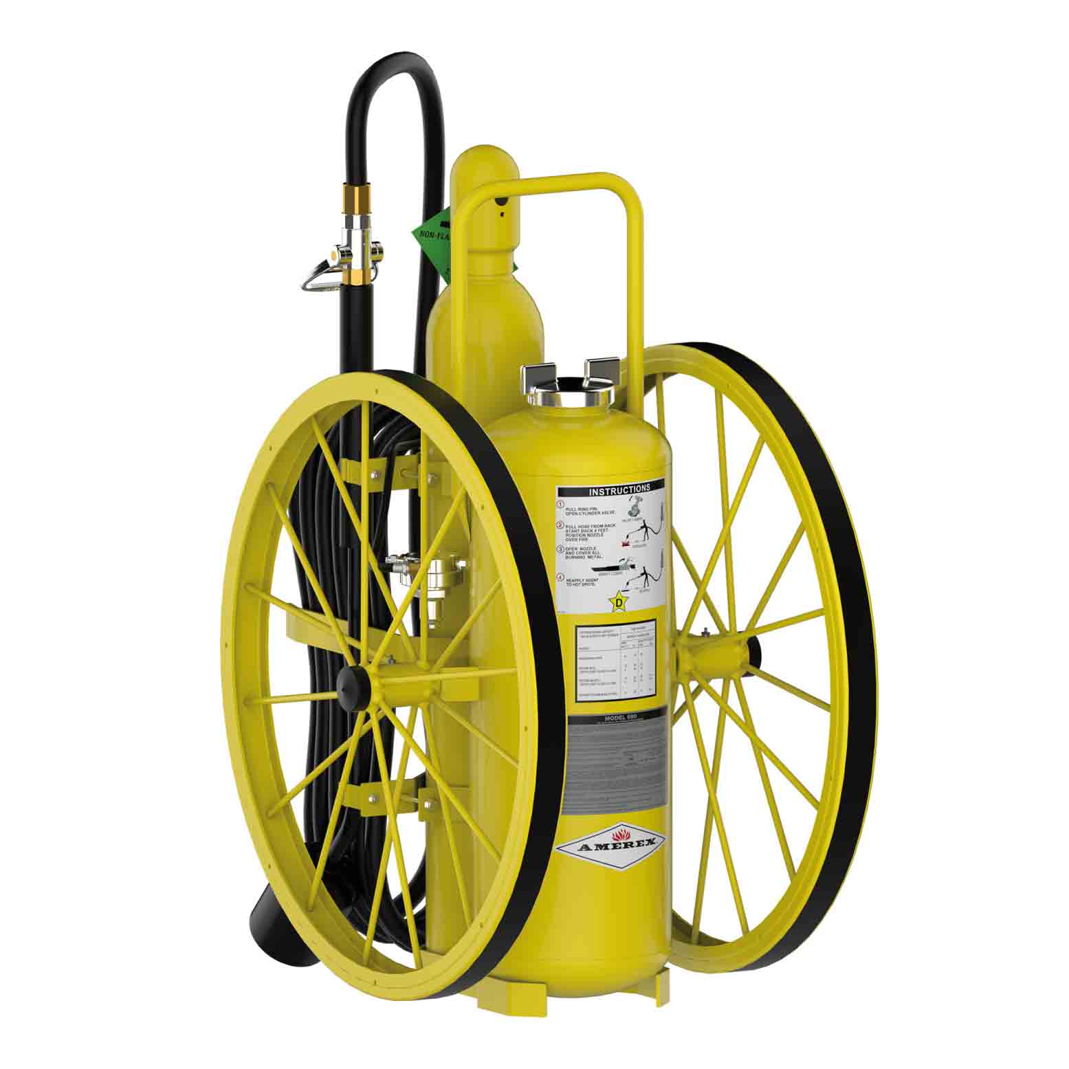 Carro Extintor de incendios, polvo seco, de 50lb presión almacenada, con manguera y boquilla, SOLAS/MED